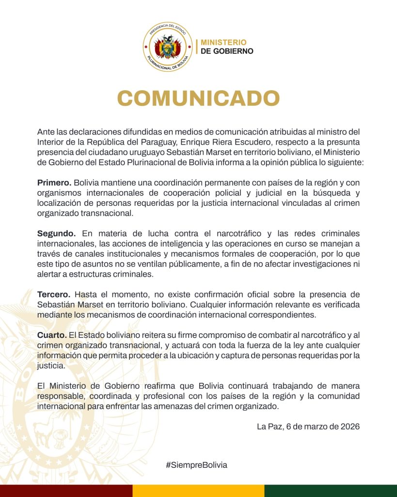 COMUNICADO – MINISTERIO DE GOBIERNO